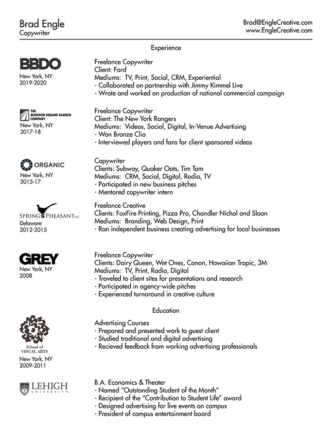"I had the pleasure of working with Brad for over a year. His dedication, work ethic and creativity were on constant display. His tireless drive to learn and improve pushed the brand and the work we did forward. Brad will make a fine addition to any creative team he joins."